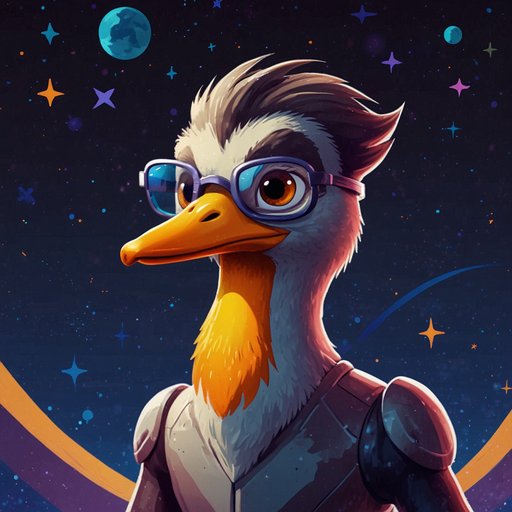 RocketGoose mascot — a goose with glasses against a starfield
